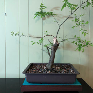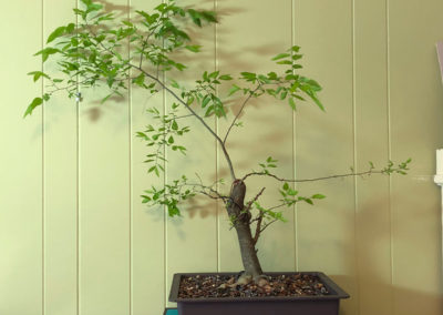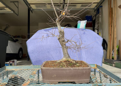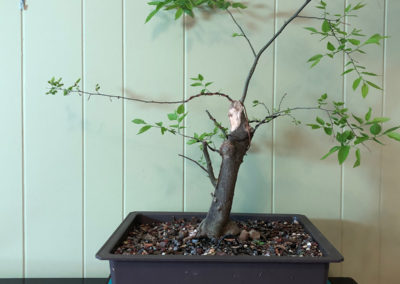 February 1, 2020. It’s embarrassing that I haven’t kept this page going. Spring 2019 I put this tree in a new grow pot, one of the very “airy” ones. It grew OK over the year, but didn’t do what I hoped it would. I think it’s going to be fine, but this year I really need to use a better soil mix. Potting soil and fine aggregate, I think. That might need a better pot, one that’s a little more solid. I did watch a really good video about carving deadwood that made me think I wouldn’t have to rechop any at all; I just have to make the big chop look better. I have branches in all the right places, so it’s up to me now.