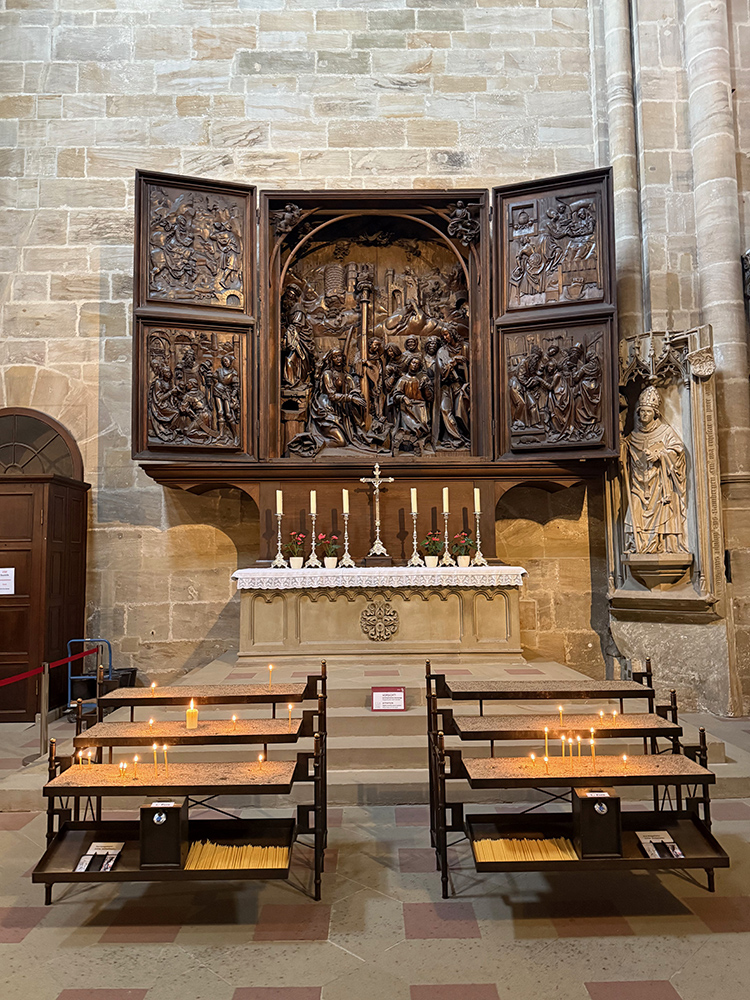 2025 Cruising with Friends Amsterdam to Budapest Bamberg Sometimes you take a lot of photos, sometimes you don’t. The city hall is uniquely placed, sort of in a channel of the river, elevated of course. The cathedral has a rare element: two chancels/altars, one at each end of the building. 20250910.Bamberg01 20250910.Bamberg02 20250910.Bamberg03 20250910.Bamberg04 20250910.Bamberg05 20250910.Bamberg06 20250910.Bamberg07 20250910.Bamberg09 20250910.Bamberg08 Other Pages Cruising with Friends / Cologne / Rhine Valley and Rüdesheim / Frankfurt / Wertheim / Würzburg / Rothenburg / Bamberg / Nuremberg and the Rhine-Danube Canal / Regensburg / Passau and Melk / Vienna / Budapest