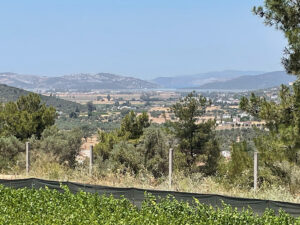 Our departure was late in the morning, but mezes (snacks) were to be included at some point, so I didn’t think it was necessary to eat lunch. Though a larger group had left on this same tour earlier in the morning, there were only 16 or so people in our group. We knew we were going to a vineyard and winery, but we didn’t know much. We were in the final days of an Islamic holiday, we were on the coast in another city known as a local vacation spot, so there were a lot of people in Bodrum. That made the drive slower getting started than it might have otherwise, but the drive itself was scenic and enjoyable. Beautiful beaches and seacoast resorts were on the left, and arid mostly bare mountains with scrubby pines were on the right as we headed north, moving straight across the peninsula to the similar coast on the other side. Once we reached the other coast we kept going. And going. Eventually, after we were effectively beyond the peninsula and on the mainland of Turkey, we turned right and reached a flat plain that was mostly farmland.