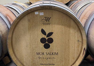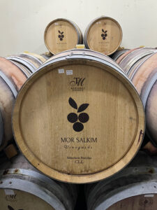 After some more driving around–and upward–we reached a spot on higher elevation in a section of rolling hills where the Mor Salkim winery was located. This was a beautiful place, with olive groves, vines for the wines, a couple of houses, and the other buildings needed to make the business run. This wasn’t like the large vineyards we’d visited in Burgundy or Bordeaux; this was a small operation that counted its annual production in bottles not cases. At the same time, it’s pretty successful for a new operation. After only twelve years since planting the vines, they were producing 50,000 bottles a year.