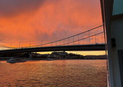 This was the final stop of the cruise, so there was a lot of packing, tipping, and saying goodbye to do. I managed to do another “tasting” guided tour before we met for the final farewell dinner that evening. After dinner we sailed up river far enough to see the House of Parliament all lit up, a wonderful sight to end the trip.