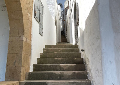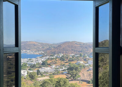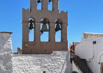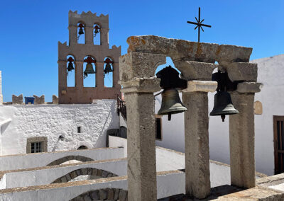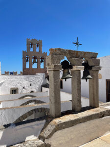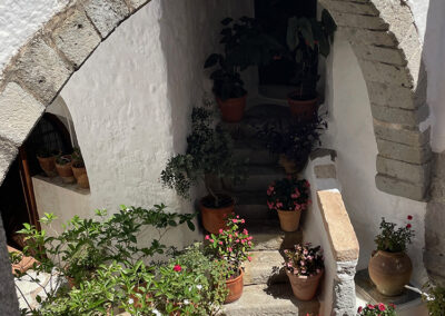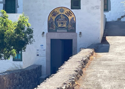 When we left this site we went to Hora, another of the three towns on this small island. Hora is at the top of the mountain and is the site of the St. John Monastery and Museum. The bus had a narrow road to follow with more than a few tight turns along the way. It couldn’t get through the narrow streets, and only a few places I saw in the town were on flat ground, so we got our exercise walking up and down hill a lot when we weren’t climbing steps.
