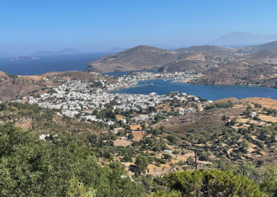We walked back down the streets and steps to board the busses and have lunch at a restaurant partway back down the mountain. I really love the opportunities like this to sample some local food, even if it is served in a somewhat commercialized context. This time we had local appetizers, a main course, and desserts, all accompanied by local entertainers and local wine. Afterward we got a longer, scenic ride back to Skala, where we boarded local boats instead of the ship’s tender to return to the Grandeur.