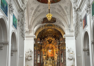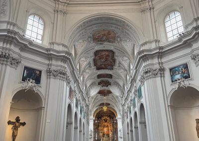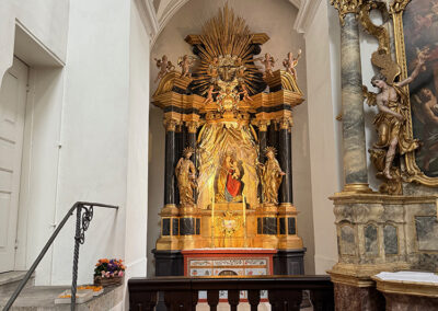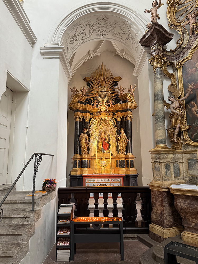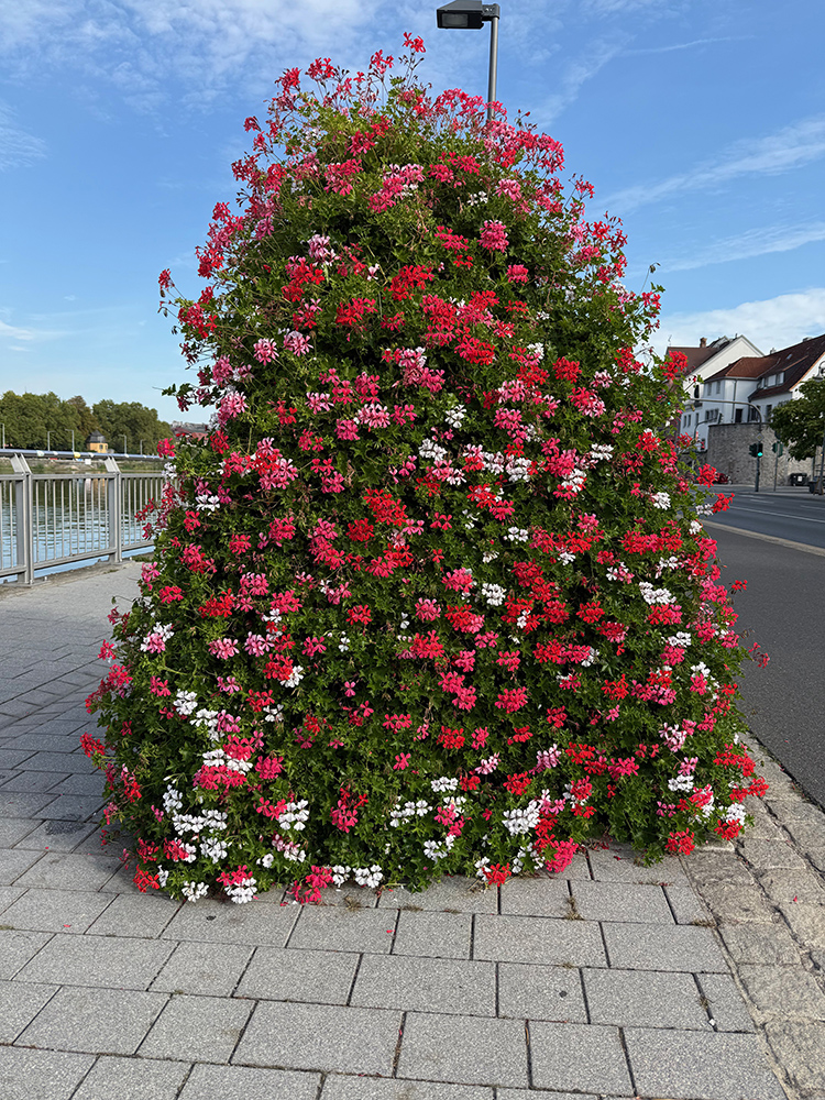 Würzburg. A city that has some “special memories” for the two of us. Back in the 90s, early in the period where we were comfortable leaving Sara-Tori and K.C. on their own, Judy saw an ad where we could get a flight to Brussels and three nights in a nice hotel for a really low price. So off we went. (Parts of that trip are described on another page of this website.) We split our three nights and took a week to drive around without plans and see some other sights we hadn’t visited before, one of them being a night in Würzburg. We stopped at the tourist information center, asked for an inexpensive place for the night after visiting the Residenz, and ended up across the river in a family run establishment near a campground.