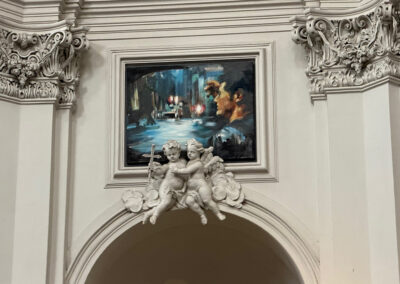 We had dinner al fresco, and Judy, who still isn’t a big wine drinker, decided to try the house wine flight. When that led to some difficulties walking straight, we discovered that we had to walk through a wedding reception where the guests were in full party mode, just to get to our room.